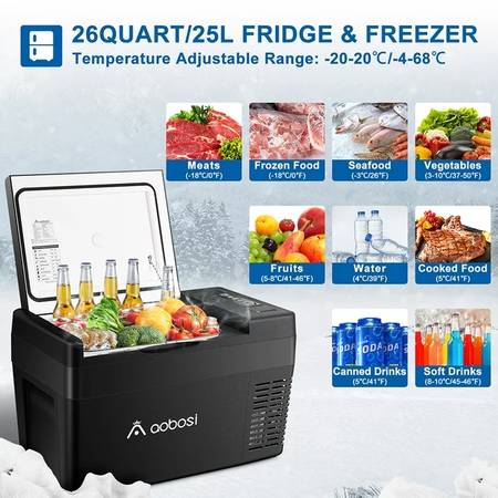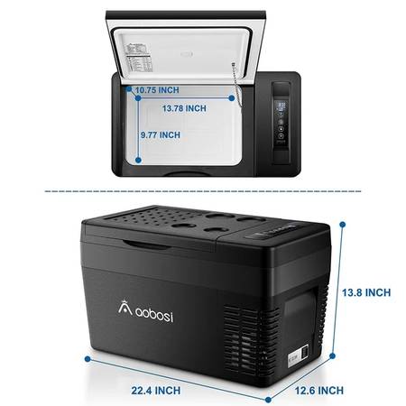 - Brand New - Never Used - Questions: Feel free to ask any Questions - BOX: Never Opened - DESCRIPTION: • 【Fast and Effective Cooling Compressor】: With H/M/L 3-level voltage protection mechanism. With a high-quality compressor, this portable refrigerator can cool down fast from -4-68℉ / -20-20℃. The powerful cooling compressor ensures your food and drinks stay fresh without spoilage, saving you money and hassle. The dimensions of 22.4x12.6x13.8 inch and weight of 22.5 lbs make it easy to transport. * 【Energy Efficient and Eco-Friendly】: Operating at less than 45/36W MAX/ECO mode , this 26-quart car refrigerator consumes little energy. It can run on DC 12/24V and AC 120-240V power supplied by vehicles like SUVs, trucks, RVs, campers, vans and boats. The intelligent temperature control system allows for efficient cycling. * 【Ultra-Low Noise for Peaceful Use】: With a noise level below 50dB, this truck freezer operates very quietly so you can sleep soundly after driving for long hours. The shock-proof design enables it to function properly even at an inclination of 45 degrees when traveling on uneven terrain. (Note: The tilt angle must be less that 5° for long time running and be less than 45° for short time running) * 【3-Level Battery Protection】: To prevent draining the vehicle's battery, this RV refrigerator/freezer comes with a 3-level battery monitor. You can select the voltage level at which the unit will shut off based on the vehicle's battery condition. This helps avoid completely discharging the battery. Multiple use for home RV truck boat camping refrigerator & freezer. * 【Useful Designs for Convenience】: This portable refrigerator has useful features like an botton panel LCD display and APP control for easy control, portable handle for mobility. The common temperature presets allow you to store different types of food and drinks at optimal temperatures - OFFERS: Reasonable offers are considered, LOWBALLERS, Best price and Lowest askers will be ignored - all sales final/no refunds/ no exchanges/ no returns - Disclaimer: I do not own the brand's trademarks, logos, pictures, or products posted. I do not intend to infringe on copyright. I find such content available on the internet. Contents are considered fair use. -AOBOSI 26 Quart Electric Car Refrigerator 12/24V DC 110-240V AC Portable Fridge Freezer -4-68℉ Compressor Cooler for Truck Van RV Camper SUV Boat Travel Camping Road Trips and Home Use