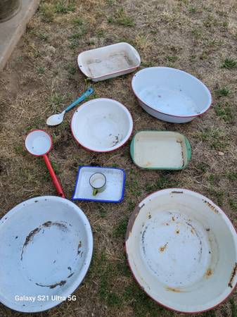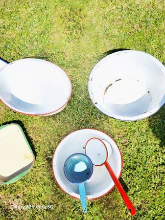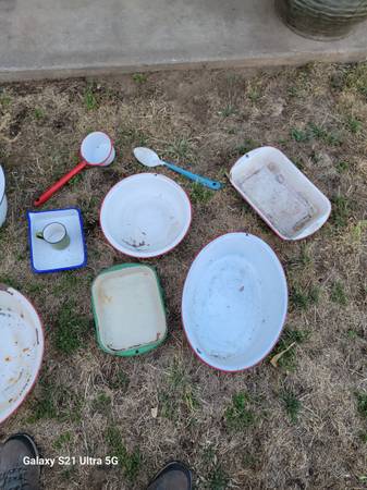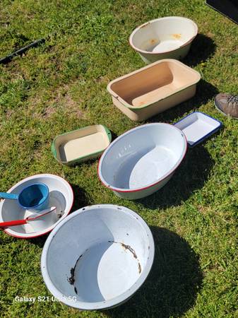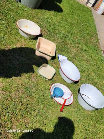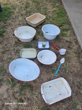6 porcelain Pans, 2 porcelain trays, 1 porcelain cup, 1 porcelain spoon, 1 porcelain water scoop.