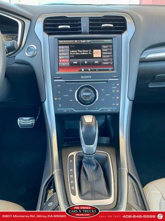 Backup Camera, 4-Cyl EcoBoost Turbo 2.0L, Power Steering, Parking Sensors, Traction Control, Heated Seats, Power Door Locks, CD/MP3 (Single Disc), Side Air Bags, Leather, Anti-Theft System, Keyless Start, Navigation System, MyFord Touch, ABS (4-Wheel), Sirius Satellite, Dual Power Seats, AM/FM Stereo, Keyless Entry, Cruise Control, SYNC, Daytime Running Lights, Automatic, 6-Spd, Fog Lights, Dual Air Bags, Air Conditioning, Hill Start Assist Control, Moon Roof, F&R Head Curtain Air Bags, Premium Wheels 19"+, Sony Premium Sound, FWD, Rear Spoiler, Power Windows, Knee Air Bags, Tilt & Telescoping Wheel, AdvanceTrac Sedan Sedan 4 4 FWD 4-Cyl EcoBoost Turbo 2.0L Gray Gasoline Beige Automatic, 6-Spd