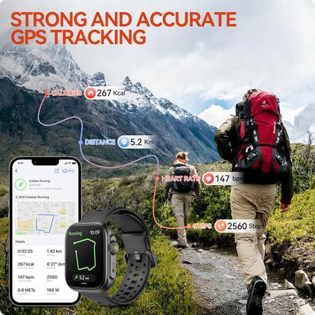 【60+ SPORTS MODES & GPS BUILT-IN】Whether you love daily fitness or outdoor activities, the VPSTAY Watch Ultra is a comprehensive and very practical GPS watch. With over 60 sports modes to suit your choice of activity, the activity tracker can track metrics like steps, calories burned, distance, and more. Built-in high-precision GPS helps More accurately track your route, distance, and pace.