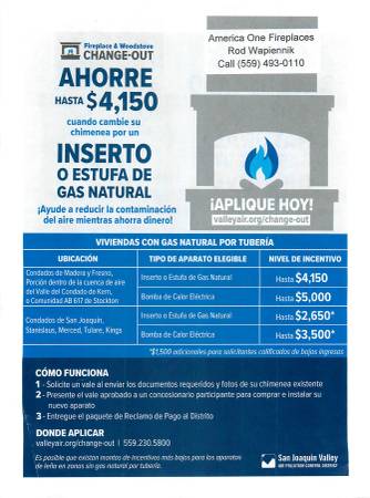 Free funding available now from the Valley Air District for purchase of a new fireplace insert for your home
