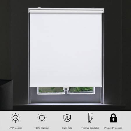 【100% Blackout】Our window roller shades are made of 100% polyester fabric with full blackout coating. It can effectively block sunlight and UV rays. Protect your privacy and reduce noise. In summer, it blocks sunlight and heat source to make the room cooler. In winter, it can save indoor heat source and make the room warmer. Roller blinds are suitable for homes, bathrooms, kitchens, bedrooms, offices, and also perfect for French doors and windows.