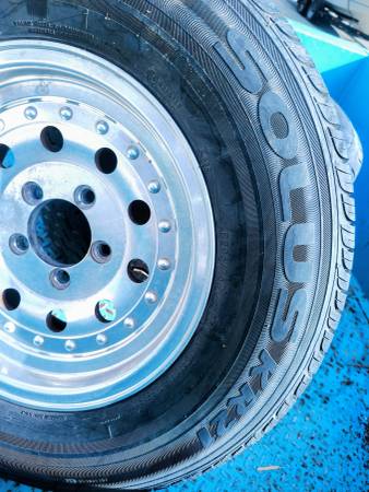 Two Grabber tires as noted in description. Including the wheels they are on. 4.5 x 5 Also: One non-Grabber tire in excellent condition but old. Also 14" Includes the wheel it is on that matches the...