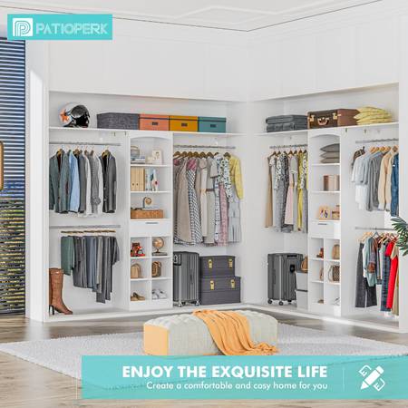 - DESCRIPTION: Flexible Custom Layout: Create a personalized storage setup with three extendable hanging rods and adjustable shelves to suit your unique needs. Ideal for closets between 4 and 9.8 feet wide, with each rod extending from 22 to 40 inches for maximum flexibility