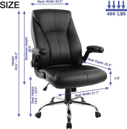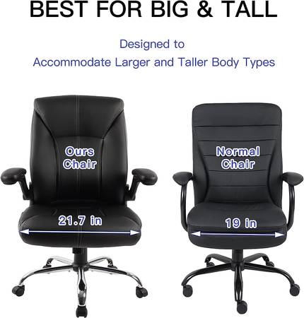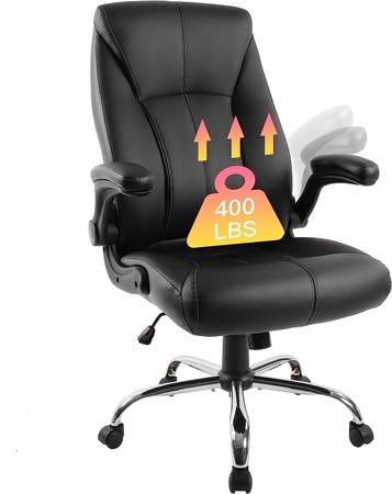 - Brand New - Never Used - Questions: Feel free to ask any Questions - BOX: Never Opened - DESCRIPTION: • 【BEST FOR BIG AND TALL】 Office chairs for heavy people offer broader seat and backs. The wide seat measures 21.7"(W)*22.5"(D). This executive office chair uses a reinforced wood frame structure, BIMFA certified gas lift and heavy-duty nylon base and rolling casters, load-bearing capacity is up to 400 lbs. * 【LUXURY LOOK OF LEATHER】Famsingo desk chair is upholstered breathable PU leather material that will let you skin breathe at all times. Leather office chairis waterproof and resistant stains, easy to wipe clean. Upscale looks makes the computer chair perfect addition to any office. * 【ERGONOMIC DESIGN】Thickened headrest and segmented padded high backrest fit to the curve of human spine can provide strong support and help you release back and lumbar pressure. Sunken surrounded seat and waterfall seat edge can keep you away from the numbness caused by long hours sitting. * 【FULLY ADJUSTABLE】Tilt-tension mechanism and gas lift allows to adjust height, seat tilt and tilt tension. Backrest can be recline up to 120°. Lift the flip-up armrest and push in the ergonomic office chair for space saving when not in use. * 【ASSEMBLE & SERVICE】Big and tall office chair comes with all hardware & necessary tools. Follow the instruction, easy to assemble in estimated about 20-30mins. - - OFFERS: Reasonable offers are considered, LOWBALLERS, Best price and Lowest askers will be ignored - all sales final/no refunds/ no exchanges/ no returns - Disclaimer: I do not own the brand's trademarks, logos, pictures, or products posted. I do not intend to infringe on copyright. I find such content available on the internet. Contents are considered fair use. -Big and Tall Office Chair for Heavy People 400lb, Executive Desk Computer Chair Adjustable Flip-up Armrests, PU Leather Swivel Task Chair with Ergonomic High Back and Lumbar Support