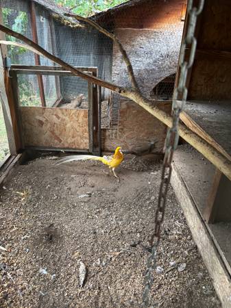 Peach splash pheasant ,$130, one year, hybrid of peach pheasant and yellow pheasant. And 6 months lady hamerest pheasant, full color tto next spring $90