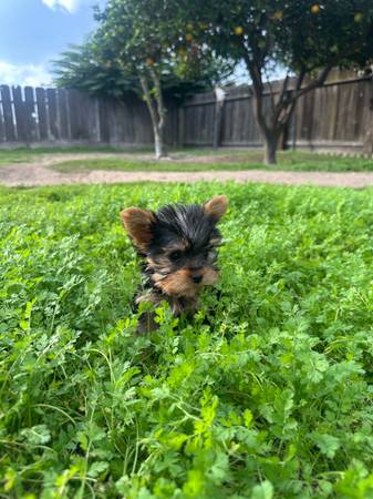 Male tea cup yorkie ready to go first are up to date dewormer, trail docked, nails clipped. Contact for more information