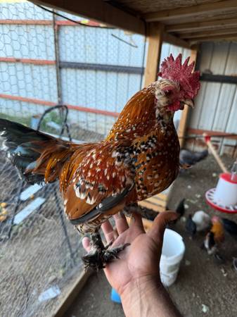 3 roosters available downsizing we have too many roosters. They’re good roosters they don’t fight.