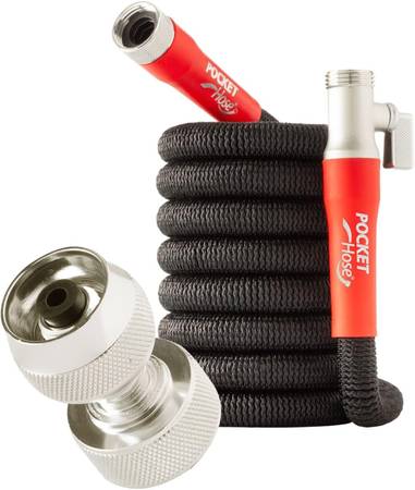 - Pocket Hose Silver Bullet 2.0 Expandable Garden Hose 25-FT with Turbo Shot Nozzle, AS-SEEN-ON-TV, Lead-Free, Solid Aluminum Connectors, Easy On/Off Valve, Kink-Free, Leak-Proof