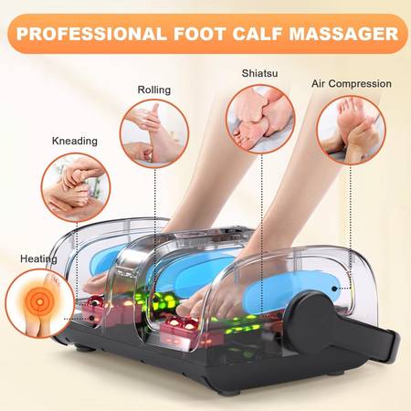 * 🔥【Shiatsu Foot Massager with Heat】 This electric foot massager offers a shiatsu-style massage which uses kneading, rolling, and heating techniques in order to rejuvenate tired arches, soothe sore and tired feet, lessens muscle stiffness of calves&arms. The foot massager machine can also be beneficial to those with medical conditions like plantar fasciitis or neuropathy and those want to improve circulation and pain relief.