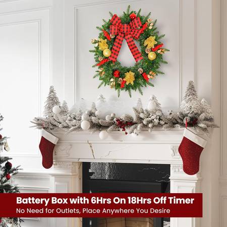 - DESCRIPTION: 【24-Inch/28-Inch Extra Large Deluxe Commercial Grade Christmas Wreath】: Our pre-lit Christmas wreath measures approximately 24 inches/28 inches (from the widest point). The inner size of this wreath measures about 11/19 inches. With an ideal size, superior texture, and sturdy construction, it's a must-have holiday wreath for this Christmas/New Year’s holiday.