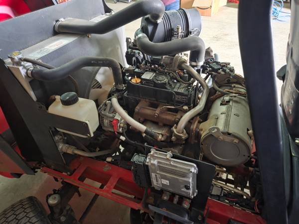 1937 hrs. In perfect operating condition. Used on a military golf course that closed. Does show a low pressure in fuel rail code but otherwise runs and operates as it should. 10lb pale of backlap compound and full 809 page factory service manual included. 8 blade reel.