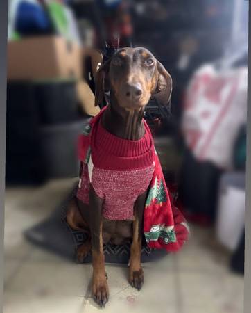 Full bread Doberman puppies (no papers) will come with all shots and tails docked if wanted . Rehoming fee applies text for more info Born Nov 17th . 2025