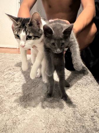 Sweet 4 month old female cat and 1 month old boy kitten looking for a home. They are affectionate, playful, calm, curious, and litter trained. They are RESCUED CATS.