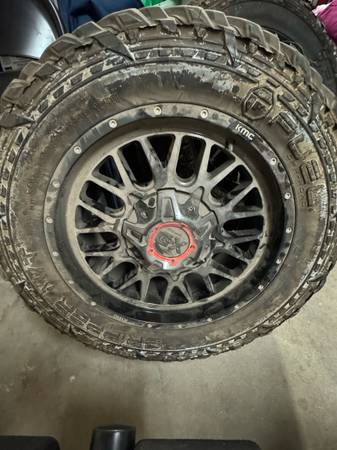 33” tires they have a lot of life left. Rims aren’t scraped just need a little clean up.