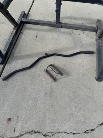 Squat Rack, bench, and cable accessories. Bench comes free with rack. $80 for everything. I also have other equipment that’s not listed in this post CASH ONLY!! No holds. Ignore: Weights. Weight....