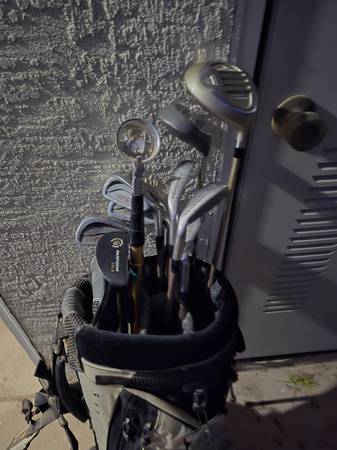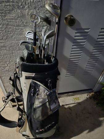 Women's right hand Mitsushiba Viper Oversize iron set which includes 3,4,5,6,7,8, and 9 irons. Sand wedge, pitching wedge, Parform putter, Vectra 10.5 degree 1 wood, and Spalding 3 wood. Set also includes ball retriever and golf bag with stand. Good condition!