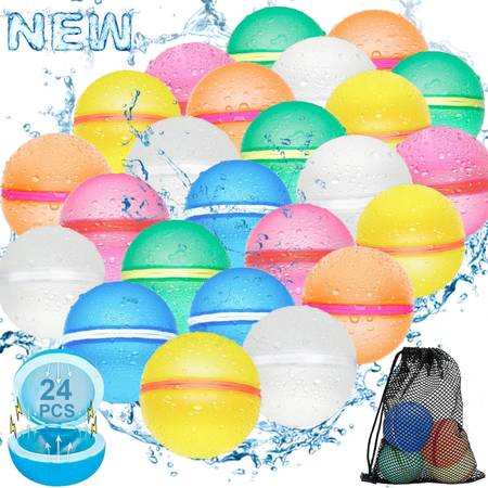- Reusable Water Balloons for Kids,24 PCS Magnetic Refillable Latex-Free Silicone Water Bomb with Mesh Bag, Summer Toys Beach Toys Swimming Pool Party Supplies Bath Toy Outdoor Idea Gift for Kids