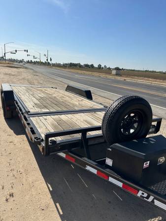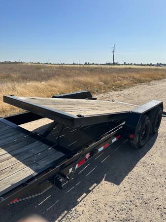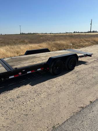 21’ PJ Tilt Trailer. Dual 5200 lbs Axles Demco Coupler Trailer is in great condition Spare Tire TooI Box 83" between fenders Tilt deck is 17ft 4’ Stationary Deck Total Deck approximately 21’ $7500...