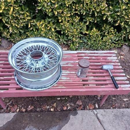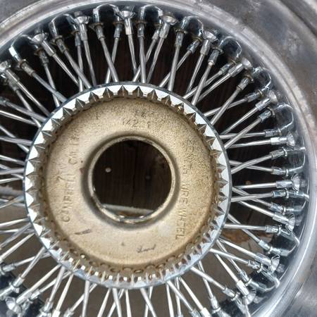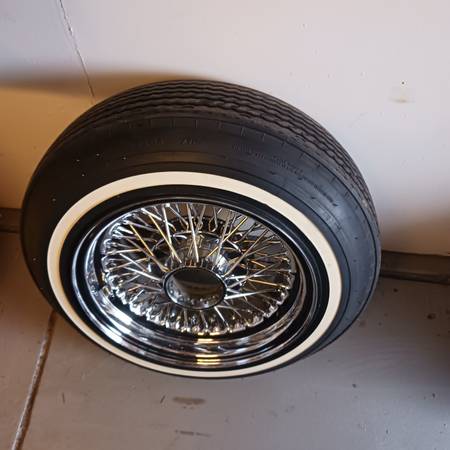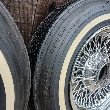 OG Zenith wire wheels with Campbell California Zenith stamps on the back of the hubs. 14-in standards with Coker premium sport 5.20s tires. Set of five with a bare rim as spare. All 5 rims resealed by Wire Wheel King. With the Zenith adapters and Chinese knock offs $2000.